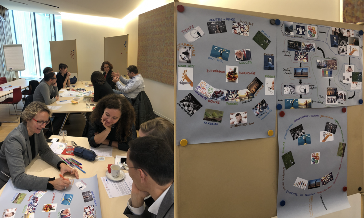 L'atelier créatif animé par notre experte Gwénaël Berthélémé a permis de réfléchir collectivement à la notion du handicap en entreprise et aux problématiques qui peuvent y être associées pendant des échanges fructueux. Il marque ainsi le point de départ de ce groupe de travail inter-entreprise qui permettra de repérer les leviers d'inclusion en matière de handicap et de tester des solutions au sein d'entreprises leaders.
